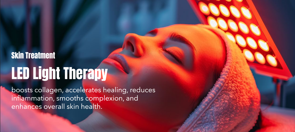 LED light therapy is a non-invasive treatment that uses Light Emitting Diodes (LEDs) to deliver targeted wavelengths of light into the skin. This process stimulates cellular repair, increases collagen production, improves circulation, and reduces inflammation. It is widely used for anti-aging, acne, and skin tone concerns without causing skin damage.